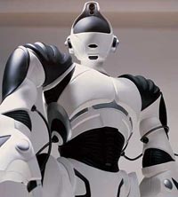 HRP-1S, el primer robot humanoide que maneja otra maquina [Backhoe], por si solo. Es fabricado por Honda, y es una mejora al conocido ASIMO. |